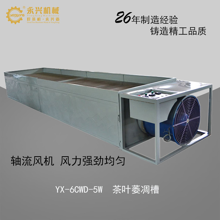 茶葉萎凋機(jī) 型號(hào):YX-6CWD-5B。 規(guī)格:萎凋槽寬1米,長(zhǎng)5米。 電壓:380V. 功率: 15KW. 萎凋溫度和時(shí)間:可根據(jù)需求設(shè)置。 客戶可根據(jù)需求定制,也可單獨(dú)購(gòu)買萎凋機(jī)頭,具體聯(lián)系客服。