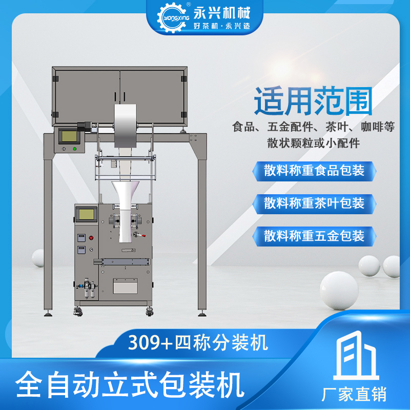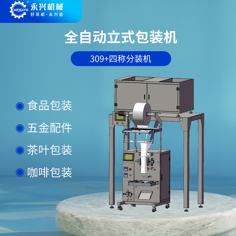 YX309自動立式包裝機是一種廣泛應用于食品、五金配件、茶葉、咖啡等散狀顆?;蛐∨浼陌b。包裝形式可選用背封袋或三邊封,根據各自需求選擇包裝袋尺寸規(guī)格(建議選用10mm的整數倍)。采購時先確定好包裝袋尺寸規(guī)格,以便廠家配置好相應制袋成型器及設備調試。 包裝袋尺寸范圍:包裝袋寬度100—420mm、包裝袋長度根據需求可自行設定<320mm,可根據色標檢測進行袋長切剪或設置長度進行切剪。包裝重量范圍:2—500克(視物料密度有所偏差)。
